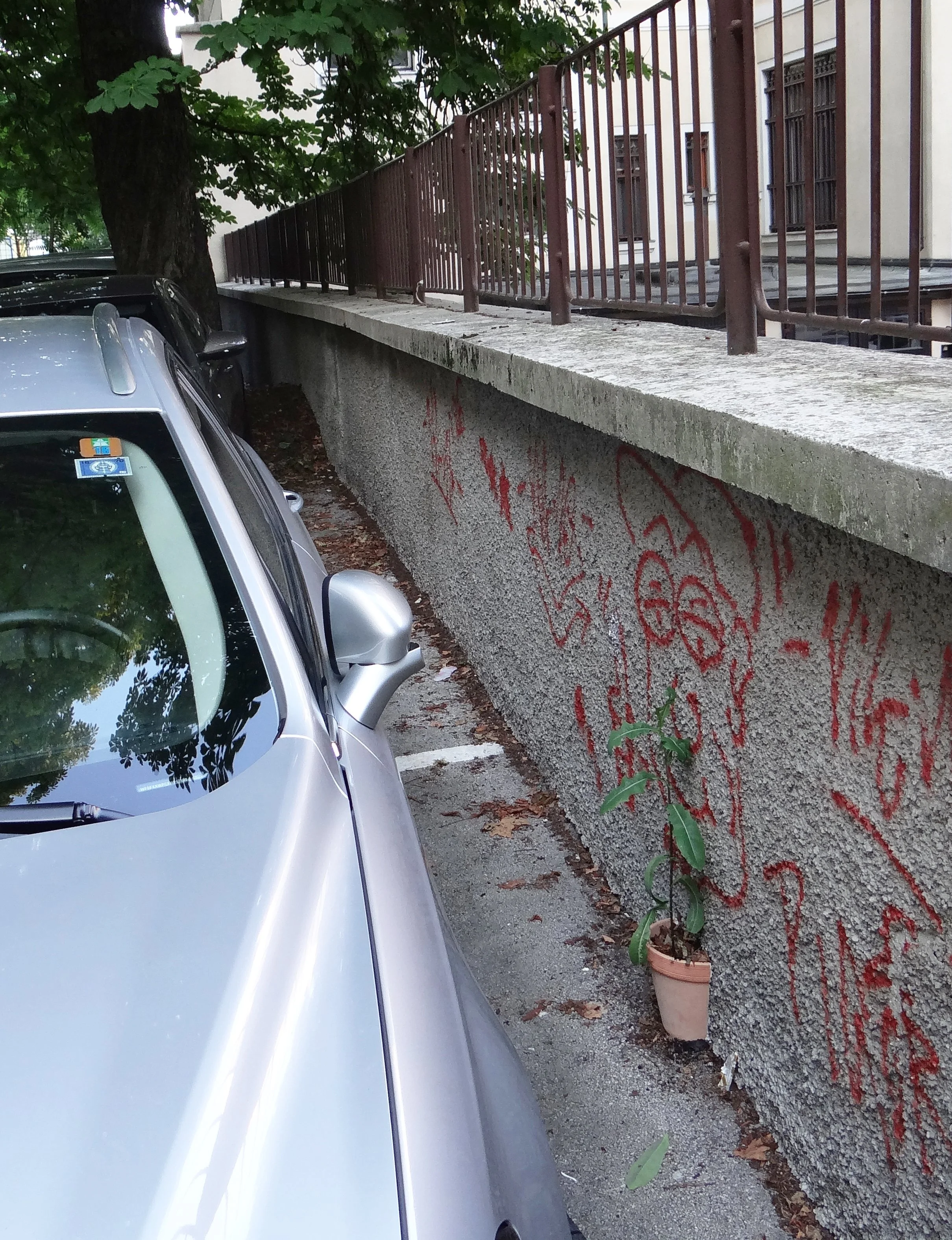 In the first series of interventions, I added customized ceramic pots to the selected weeds, which usually grow from the cracks of roads and buildings, symbolically raising them to the level of desirable, decorative plants. The series of interventions took place in Celje, where the plants, along with the pots, are still present in a few locations.