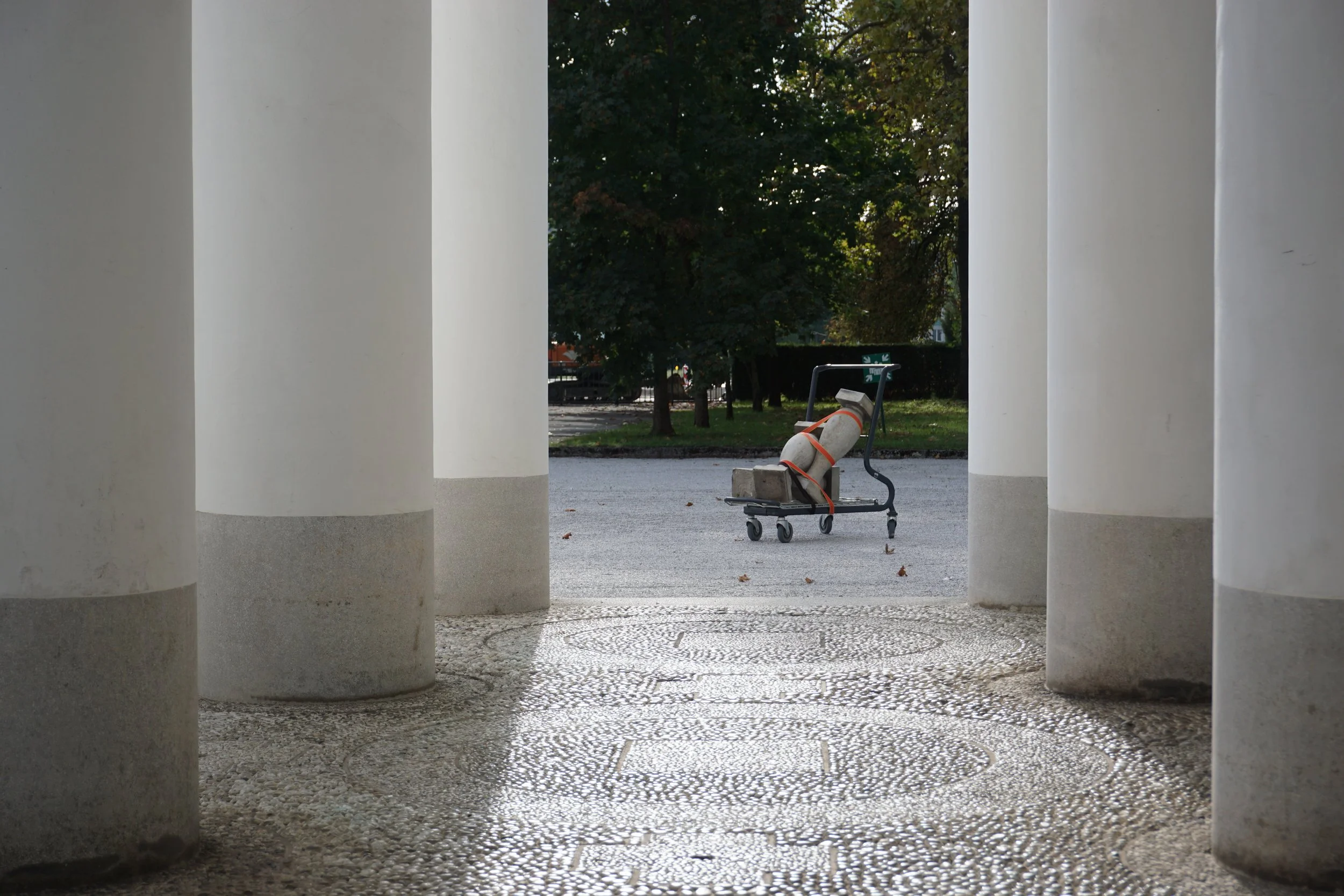 I decided to take the forgotten urban debris on a visit to their famous relatives. The walk was carried out using a shopping cart from the local retail chain Mercator.