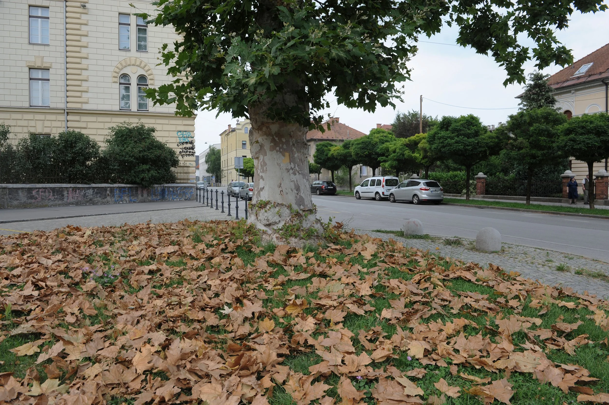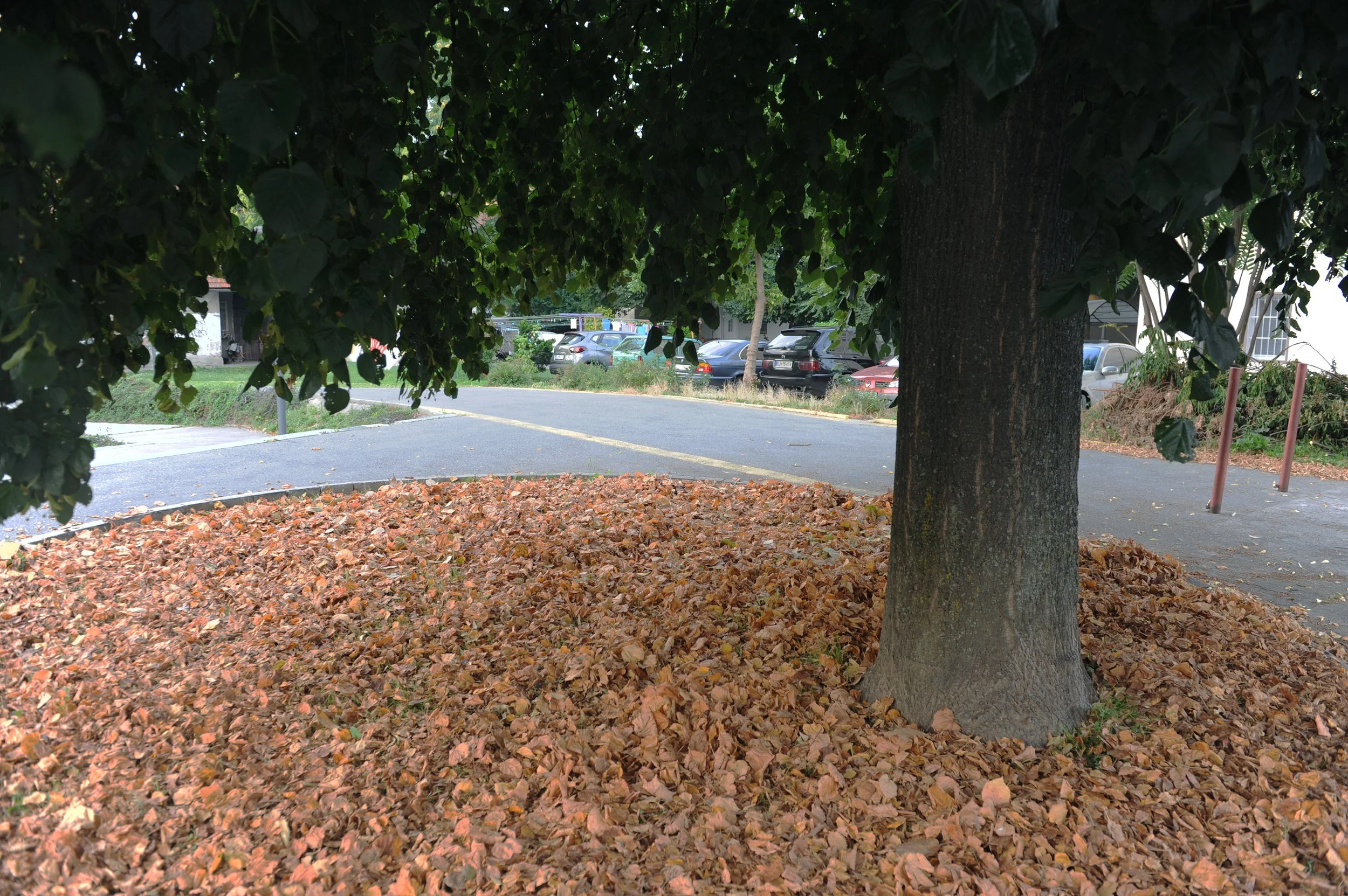 Firstly, I located two trees in an urban area in Ljubljana that grow on small green islands surrounded by concrete. One location included a linden tree, and the other one had a maple tree. In the fall of 2017, I then collected dry, fallen leaves from the two trees for 3 months and stored them in an enclosed space with controlled conditions. After about 6 months, in June 2018, I returned the brownish-yellow leaves under the trees where I had been collecting them.