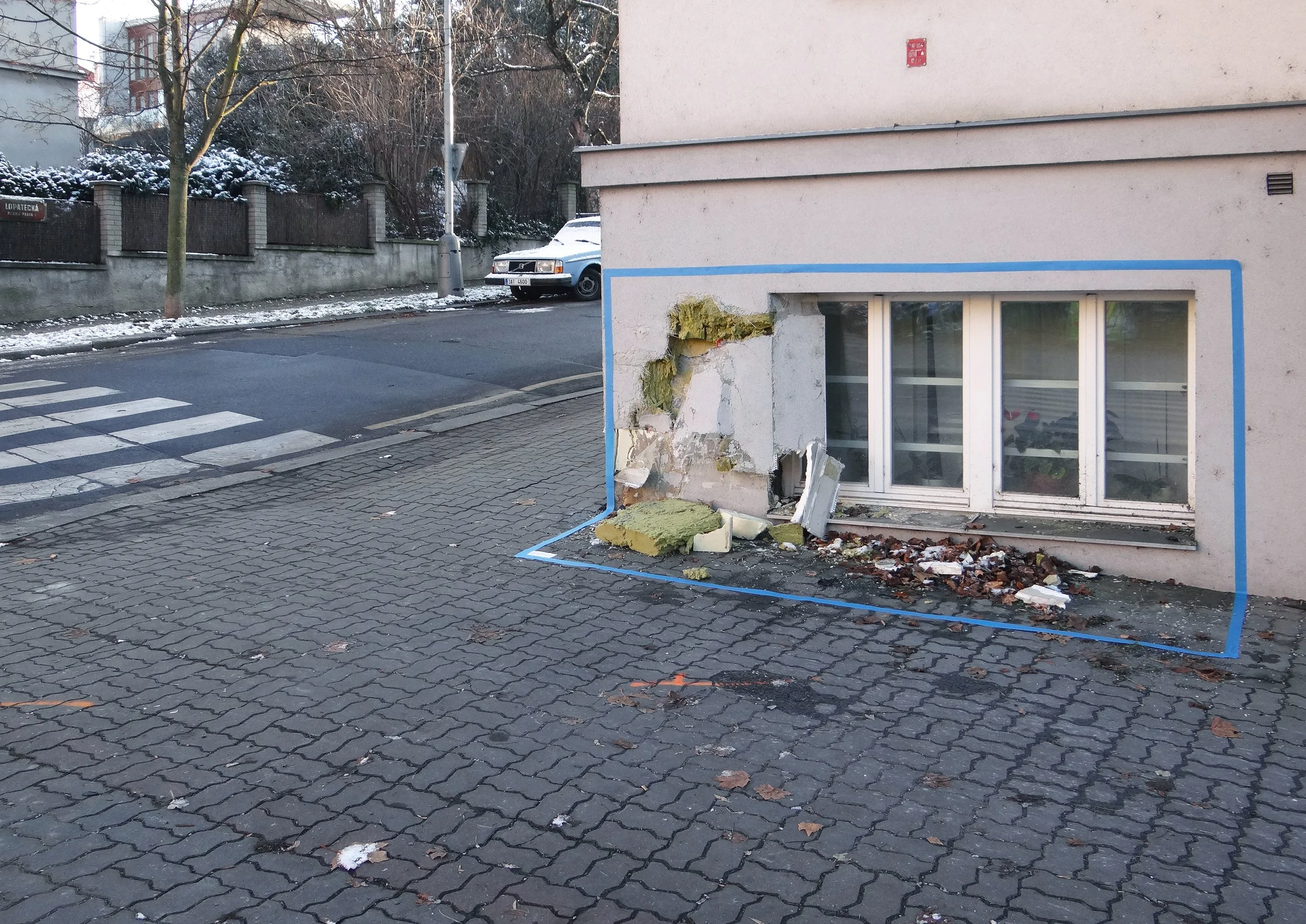 I have often photographed the coexistence of various objects and their presence in public space. At some point, I started to frame them by marking the surroundings of the spontaneous, ready-made installations with colored adhesive tapes. The color of the tape depended on the color that dominated the installation. I also left a note with the details of the work at its corner. I should probably blame Joseph Beuys for relating to these little urban situations, which is why I titled the series after his idea of so-called social sculpture.