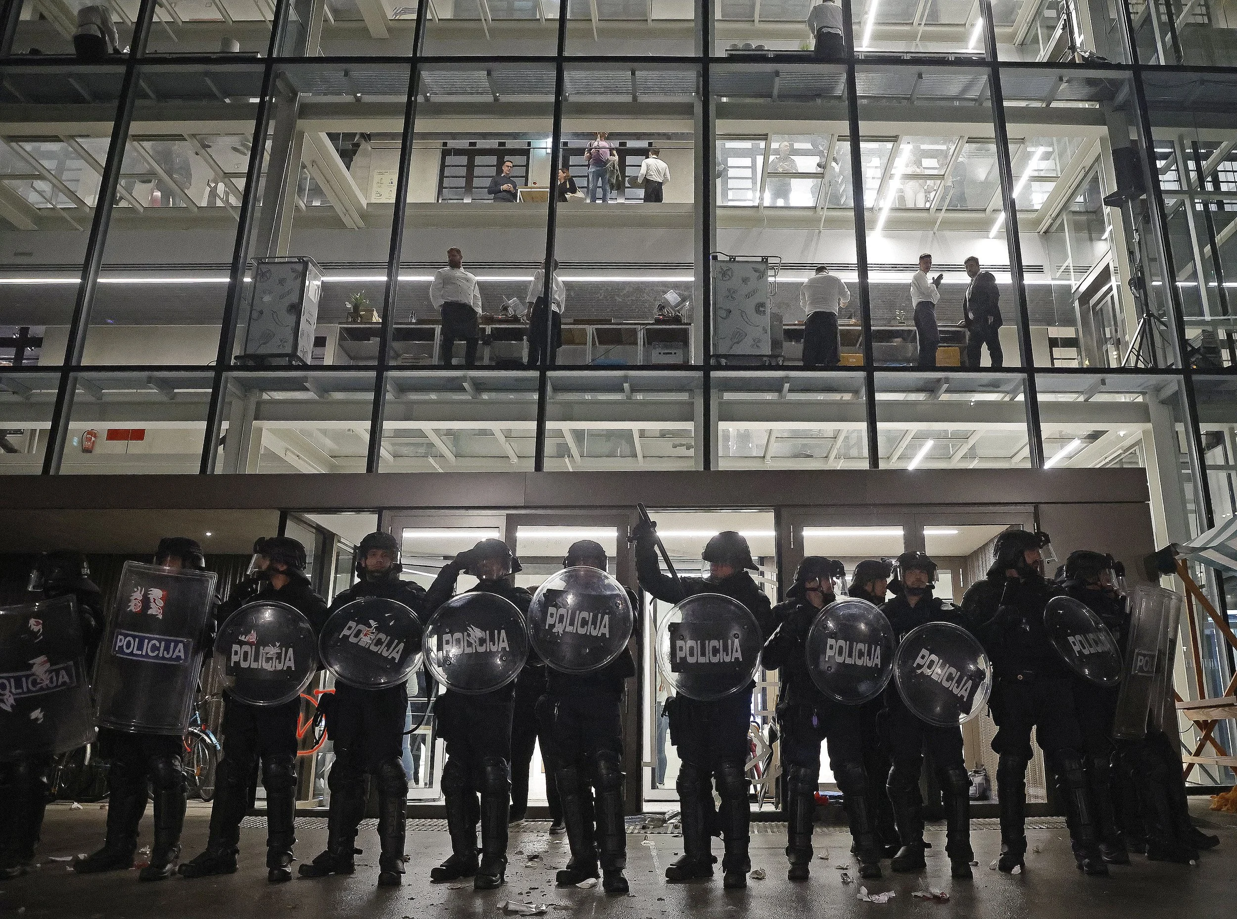 Ob odprtju so v stavbo lahko vstopili le povabljeni obiskovalci, zbrane kulturnike in meščane pa je pred vhodom pričakal kordon policije.