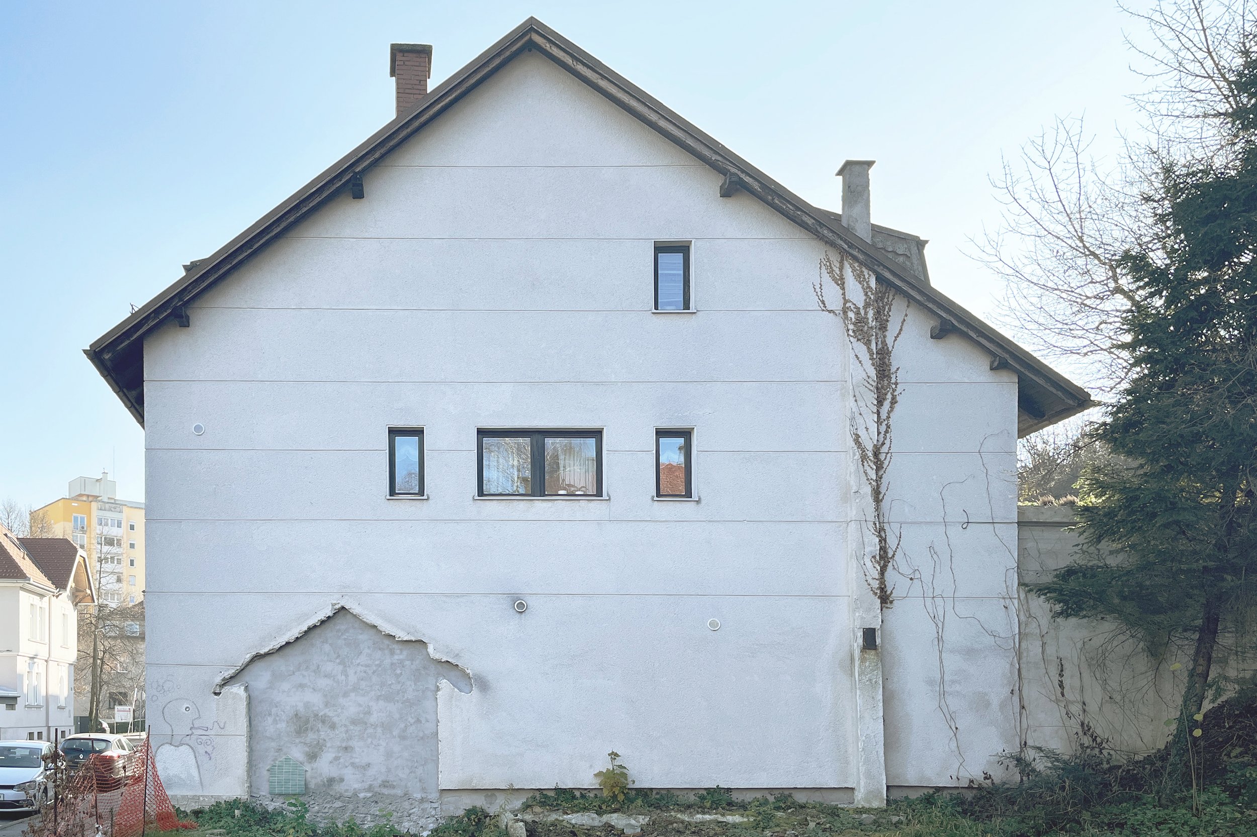 Na fasadi neke hiše sem opazil obris manjše hiše – ostanek prizidka, ki je nekoč stal ob njej. Znotraj ostanka prizidka sem namestil ploščo iz reciklirane keramike v obliki hiške, ki je do prizidka v enakem razmerju, kot je bil prizidek v razmerju do hiše, ob kateri je stal. Ad-hoc intervencija odraža nesorazmerno krčenje dostopnih življenjskih prostorov v mestu.