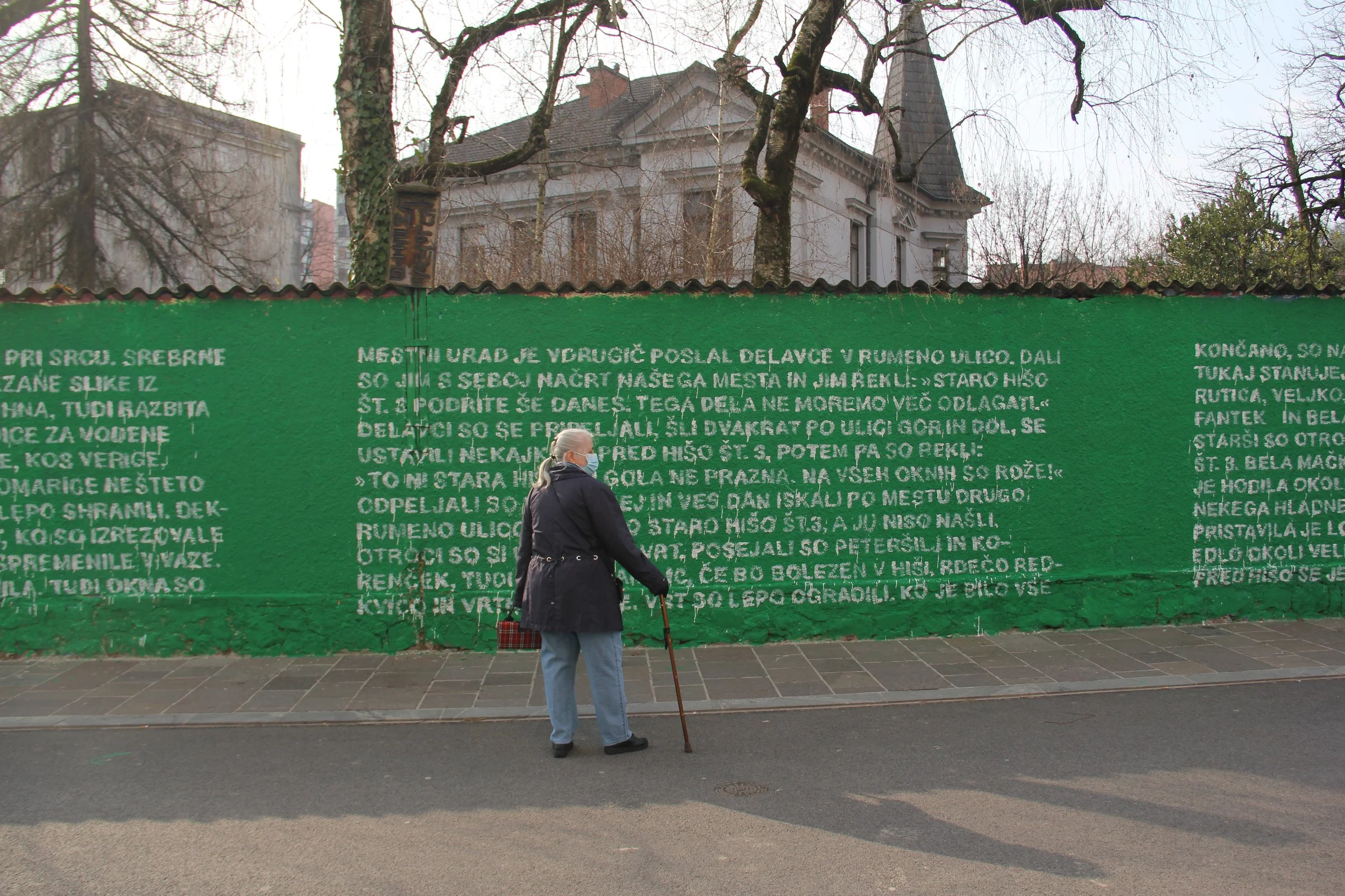 Stenska poslikava, ki upodablja pravljico pisateljice Ele Peroci (1922–2001), je nastala na steni pred največjim skvotom v zgodovini Slovenije, avtonomno tovarno rog. Zgodba stare hiše št. 3 je zgodba o skvotu.